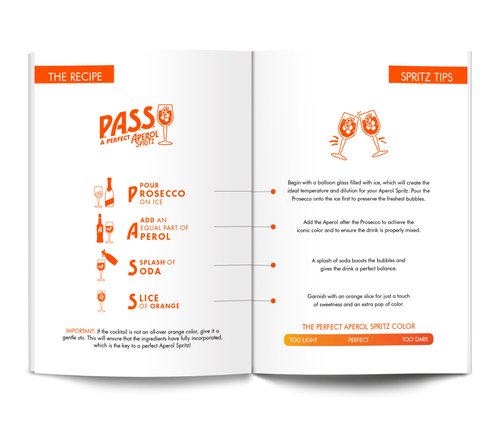 Designed a brand-aligned training notebook for bartenders, providing recipes, serving rituals and heritage storytelling to ensure a consistent guest experience. Developed a visually engaging layout with custom illustrations and clear information hierarchy to support Aperol’s sales enablement program and bartender certification initiative.